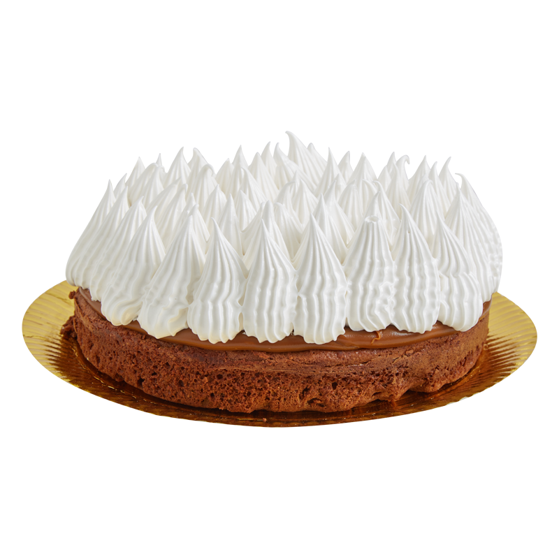 Masa de brownie con chocolate al 70% de cacao, nueces, dulce de leche y el clásico merengue italiano.