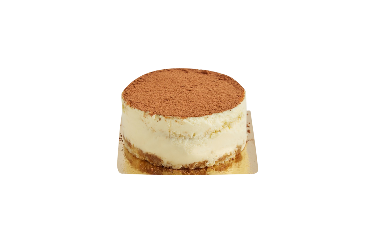 Tiramisu con queso mascarpone y almibar de cafe. Decorado con cacao.
