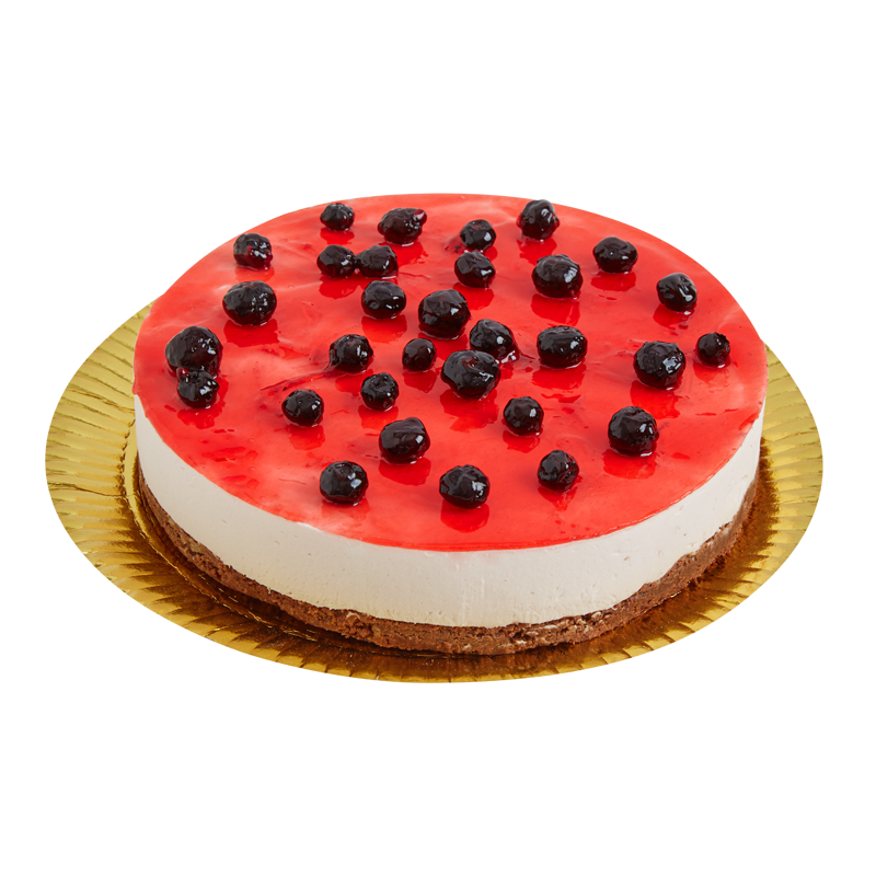 Suave bizcocho de chocolate y nueces, esponjoso de frutilla y cubierto con  arándanos.
