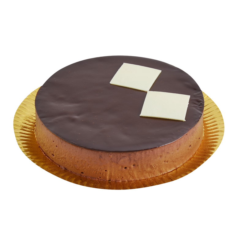 Bizcocho Sacher, mousse de chocolate al 70% de cacao.