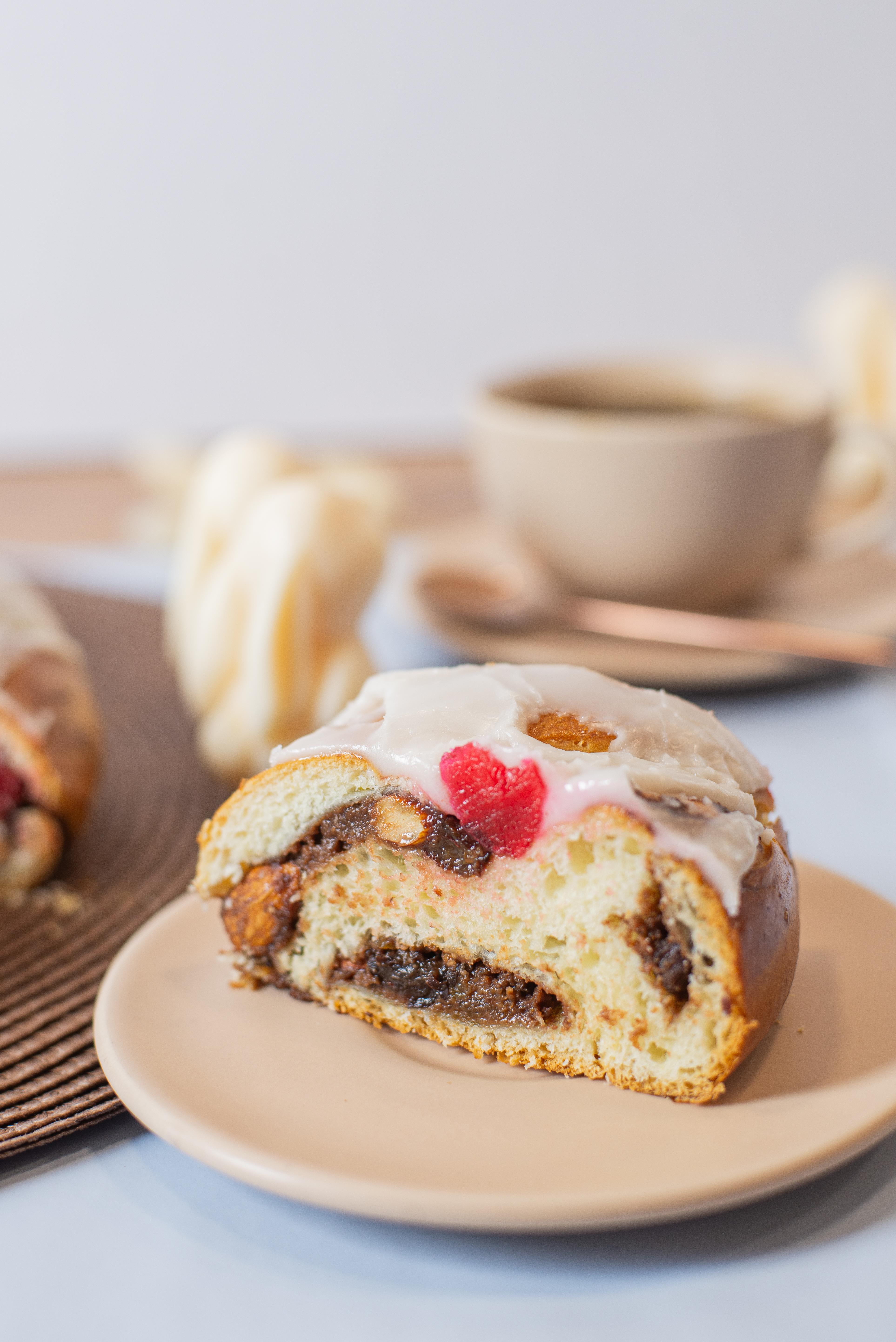 Una versión elegante y llena de sabor de nuestra rosca artesanal. Elaborada con masa suave y esponjosa, se rellena con una delicada pasta de almendras con cacao, que aporta un equilibrio perfecto entre dulzura y profundidad de sabor.